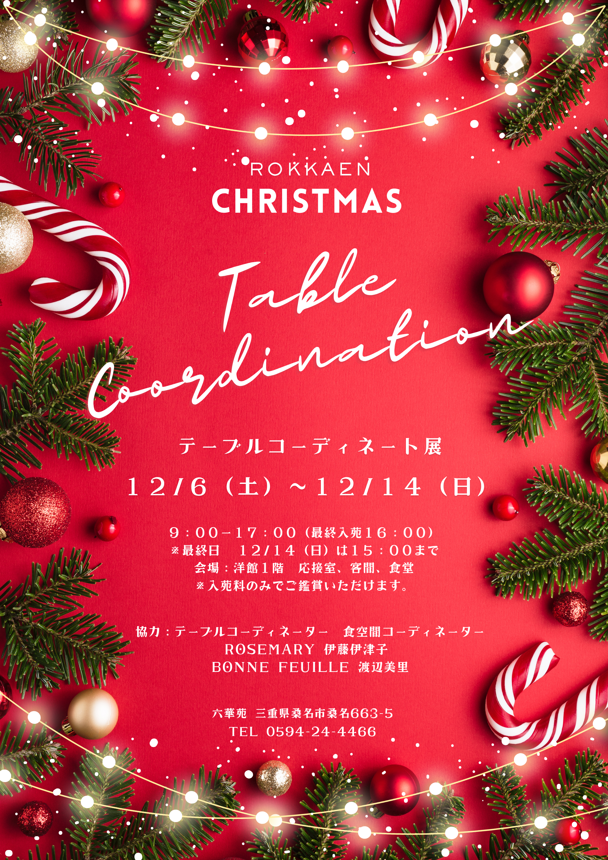 | 内容 | クリスマスをイメージした、テーブルコーディネート展を開催します。