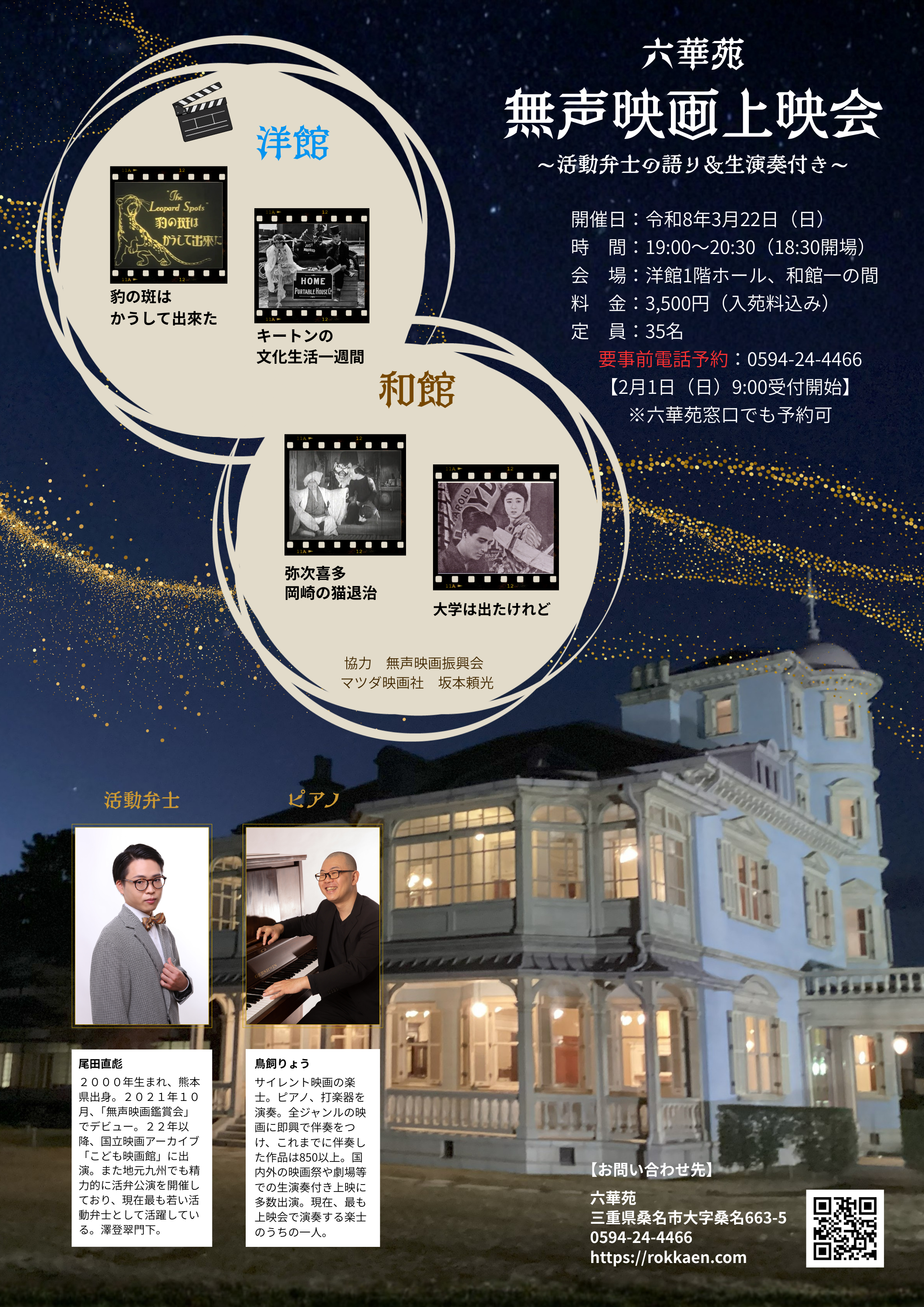 | 「六華苑無声映画上映会~活動弁士の語り&生演奏付き~」 | ||